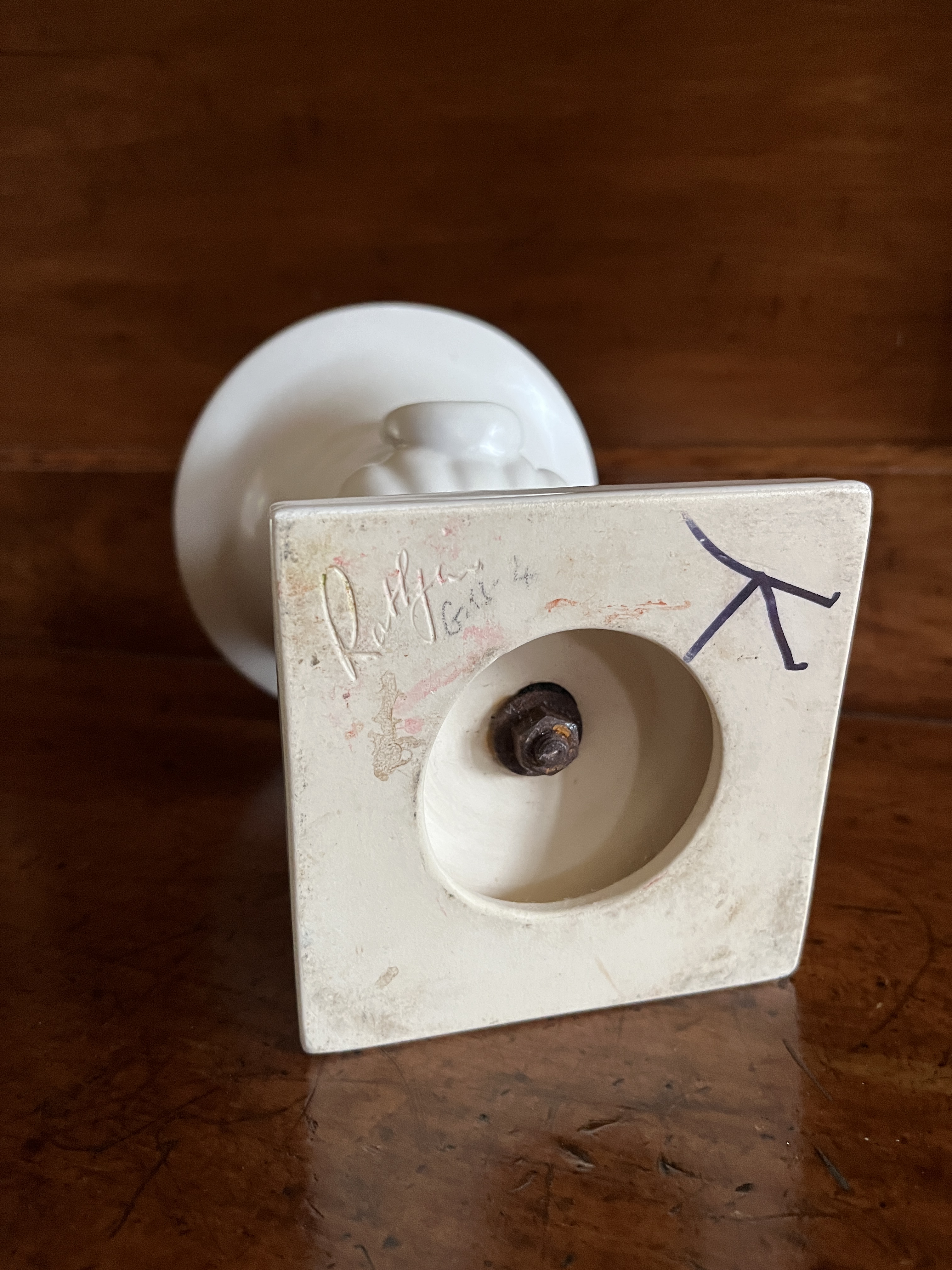 Rathjen, an Australian potter, ran a studio in Melbourne from 1948 to 1968. This urn was produced using a slipcast method and has a bolt in the base. It is a satisfying piece to hold, with a smooth satin finish and a lovely weight to it.