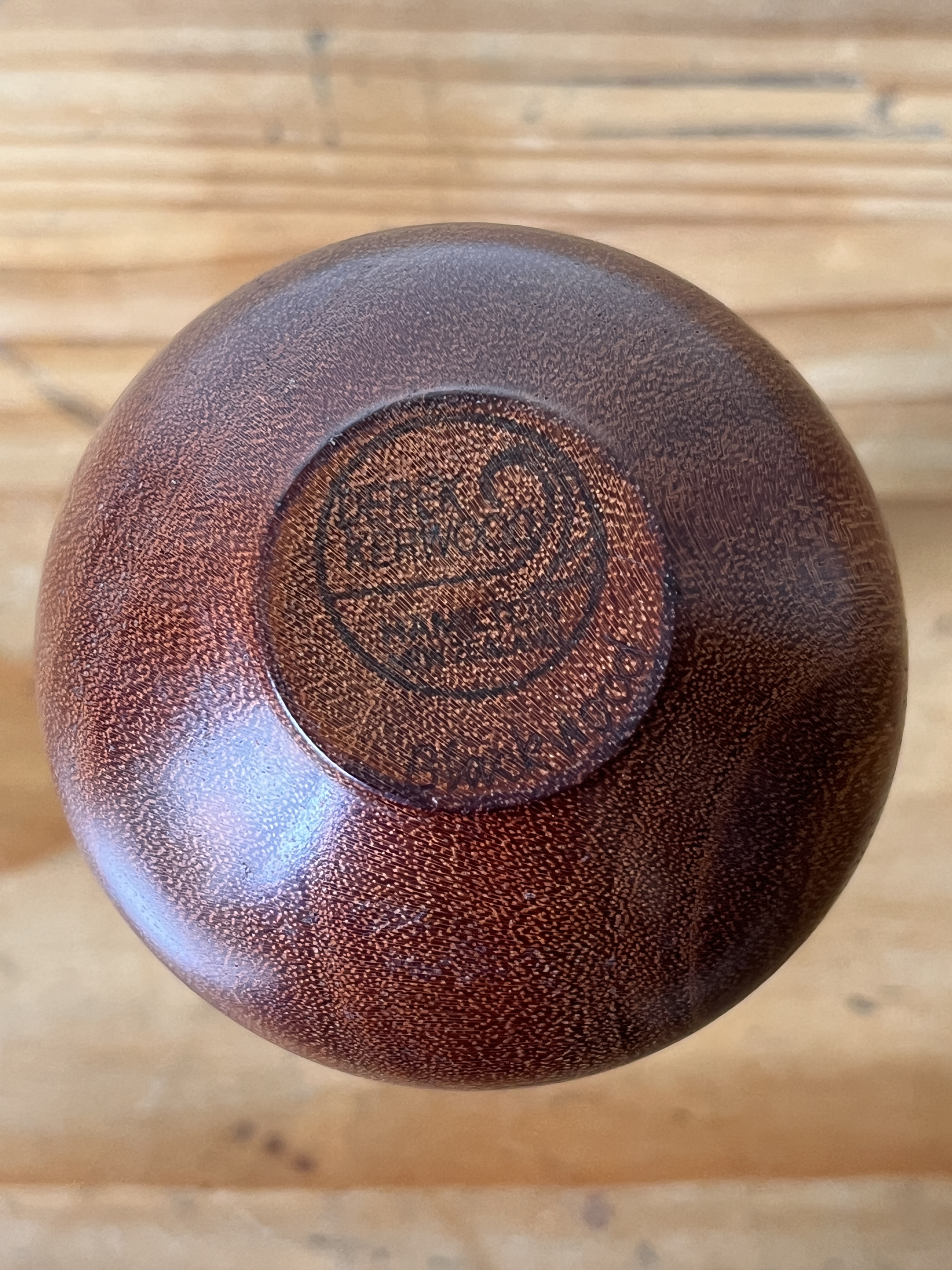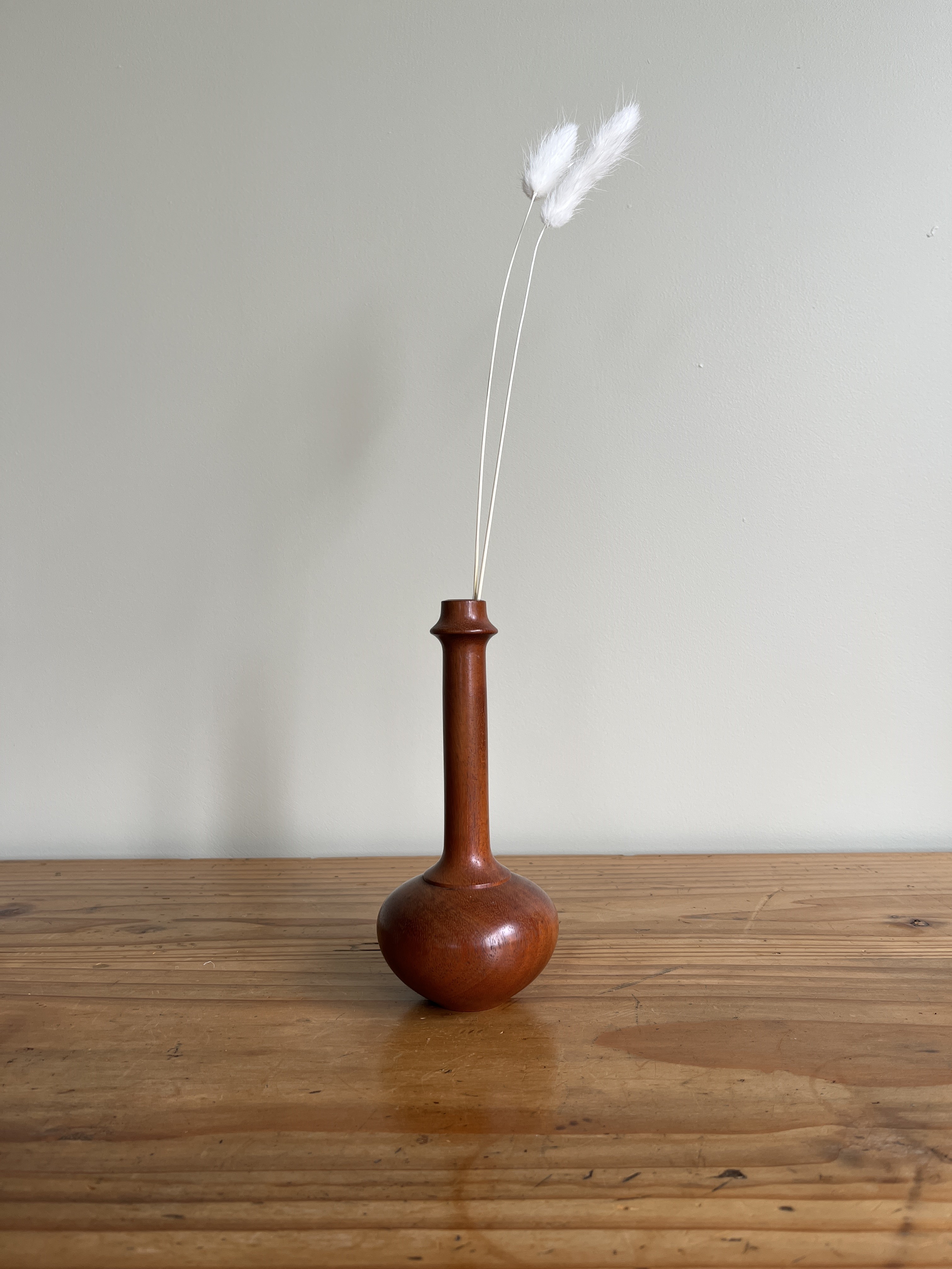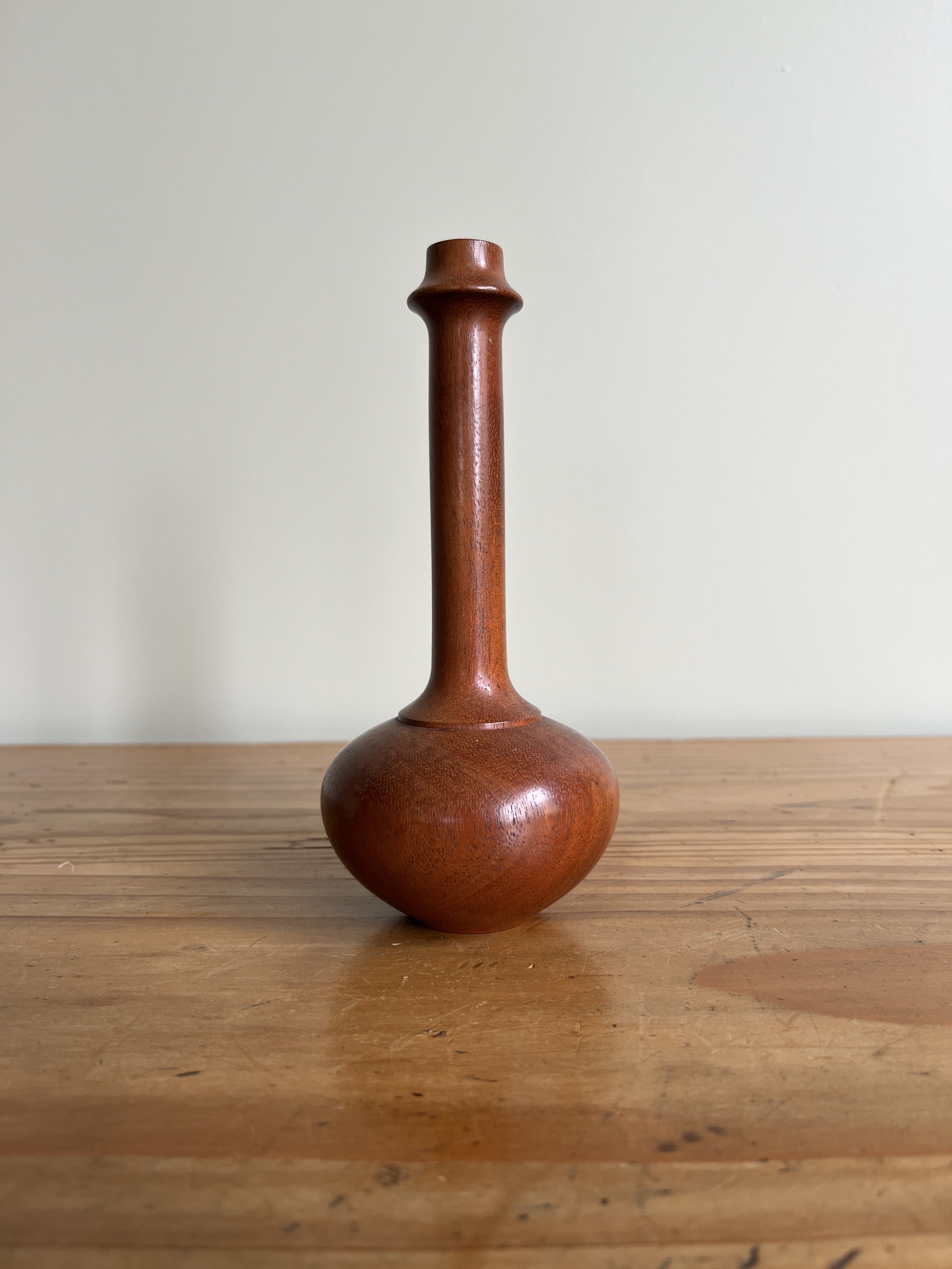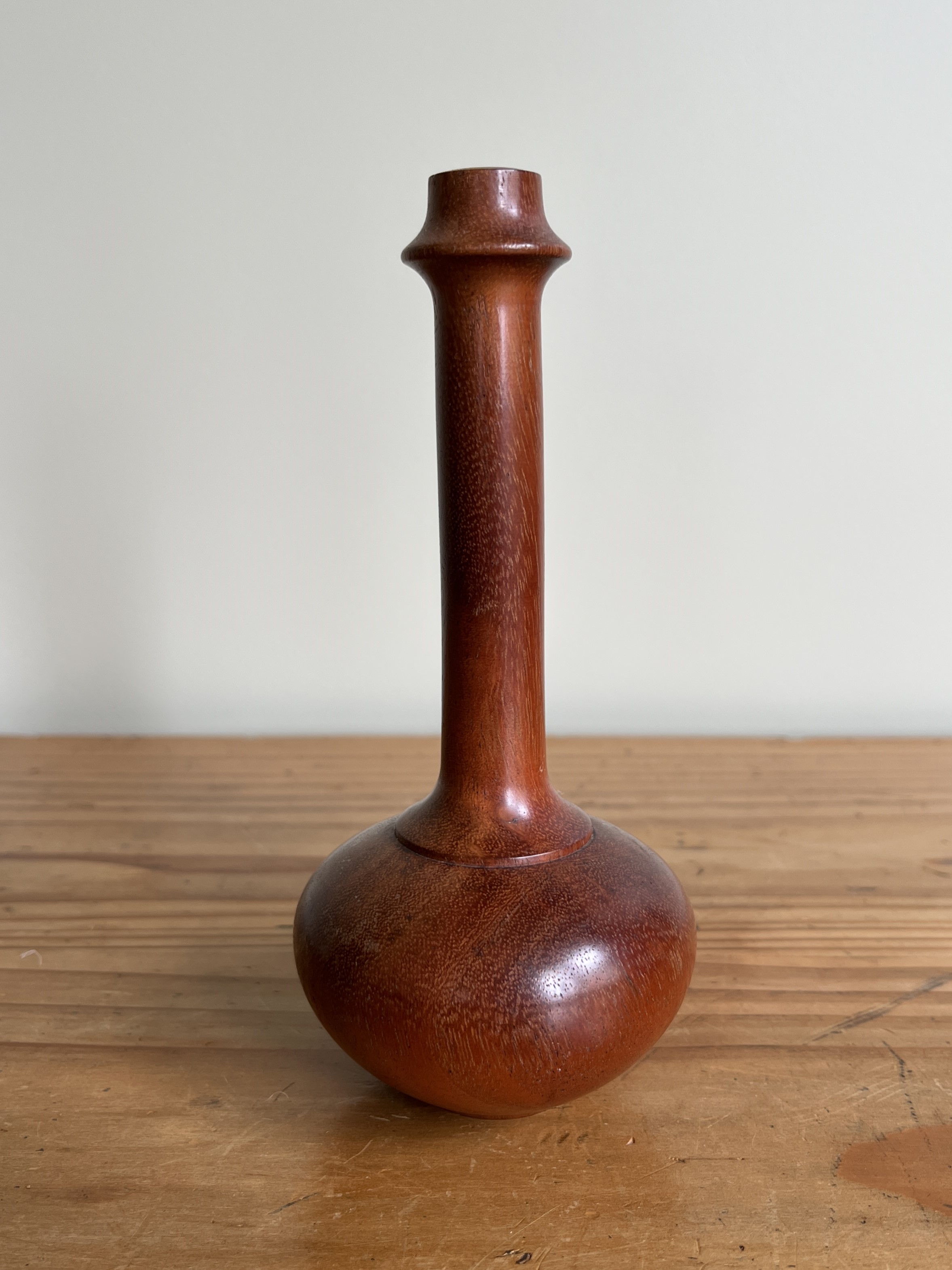 Bud vase made of turned blackwood by renowned local wood craftsman Derek Kerwood, with his maker’s stamp on base.